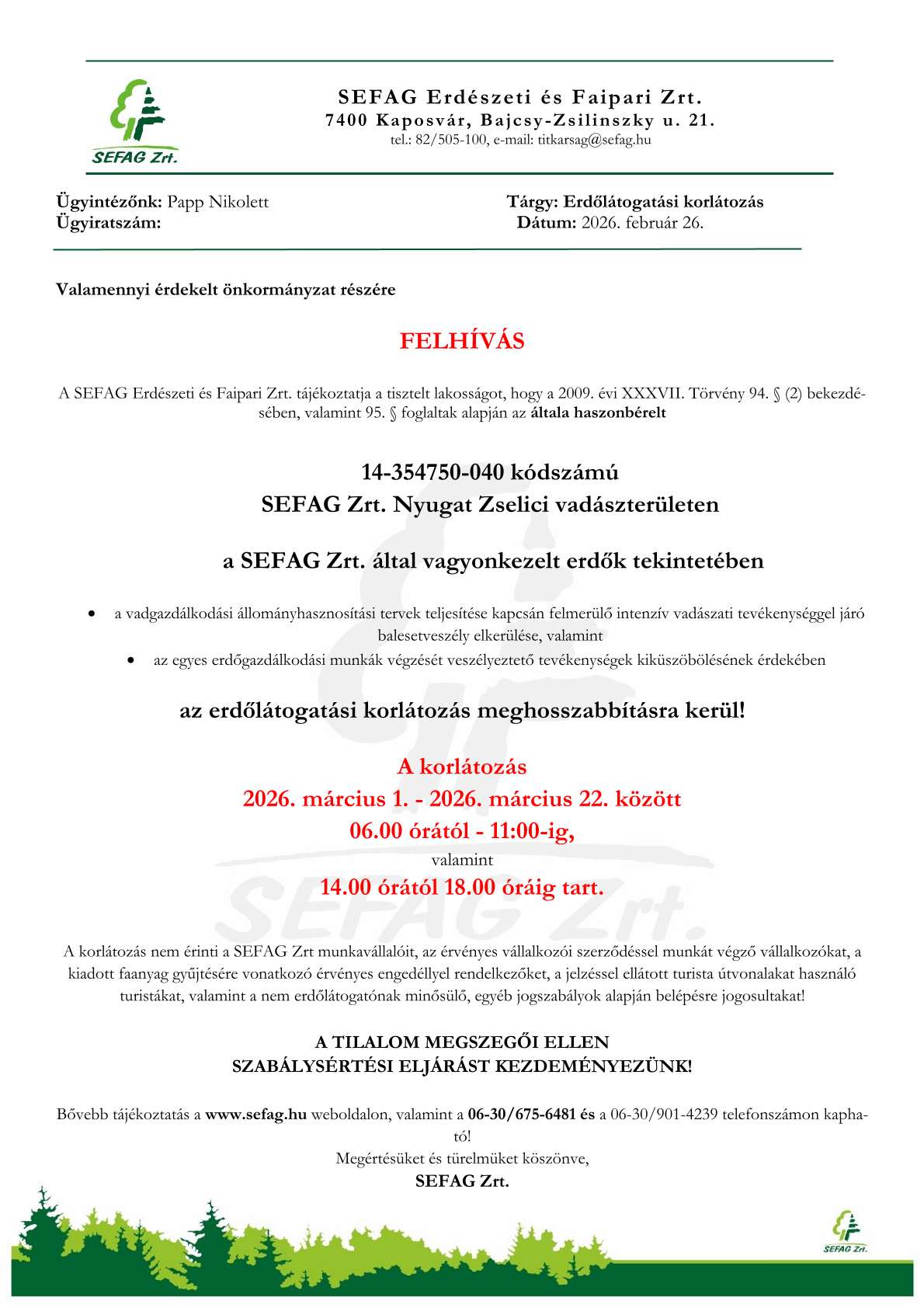 Erdőlátogatási korlátozás hosszabítása 2026 március